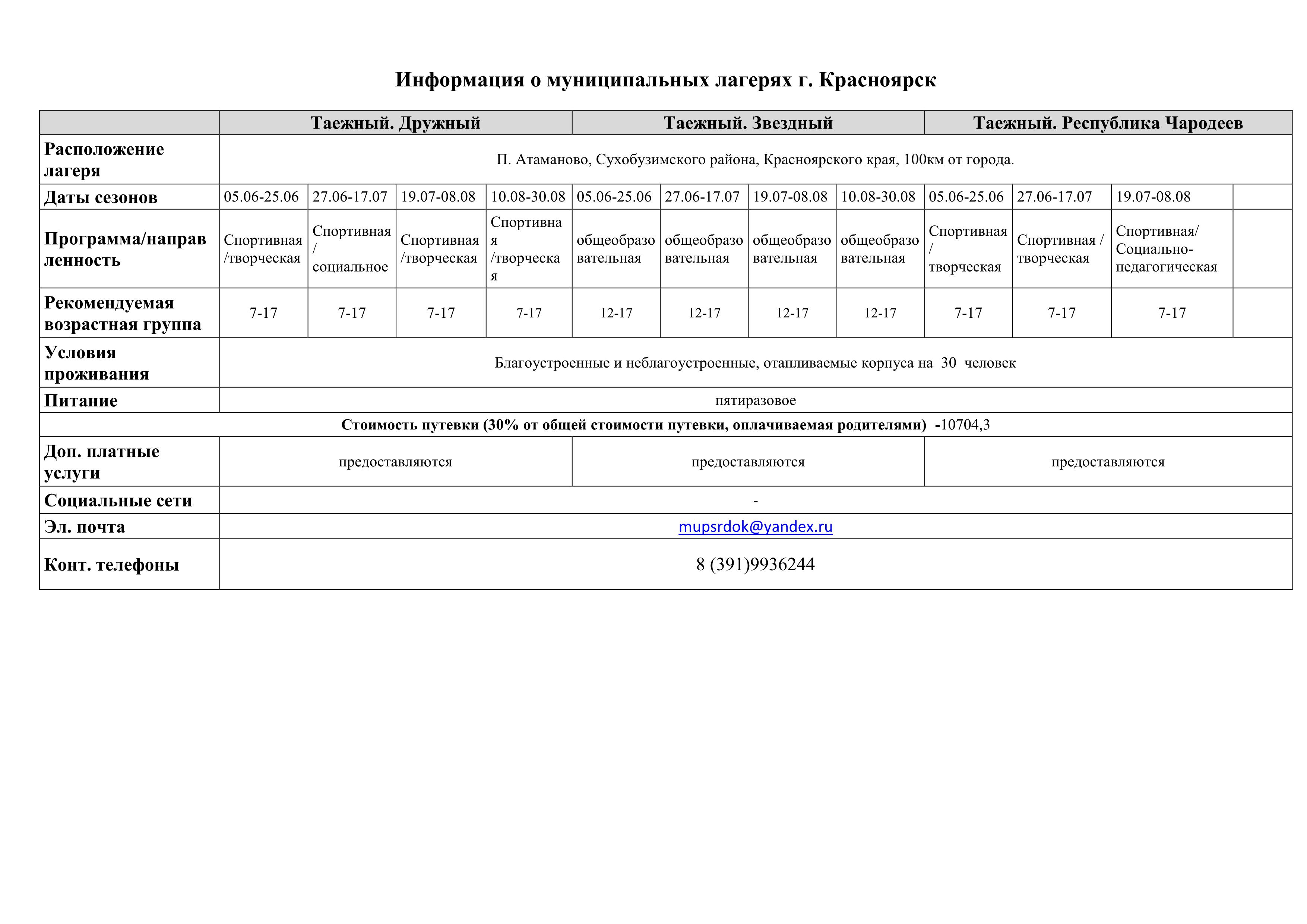 - Информация о муниципальных лагерях г.Красноярск в 2024г.